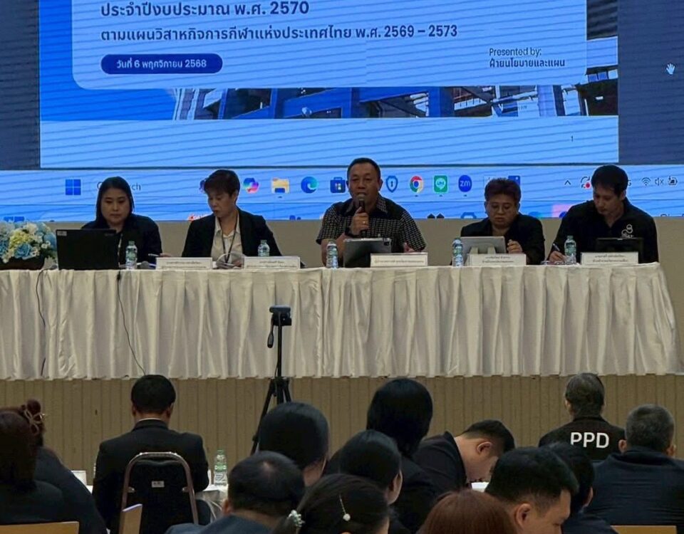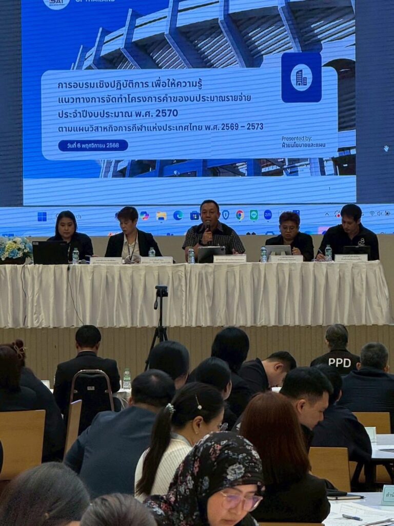 6 November 2025 6 November 2025อบรมเชิงปฏิบัติการเพื่อให้ความรู้แนวทางการจัดทำโครงการคำของบประมาณรายจ่ายประจำปีงบประมาณ พ.ศ. 2570 ตามแผนวิสาหกิจการกีฬาแห่งประเทศไทย พ.ศ. 2569 – 2573