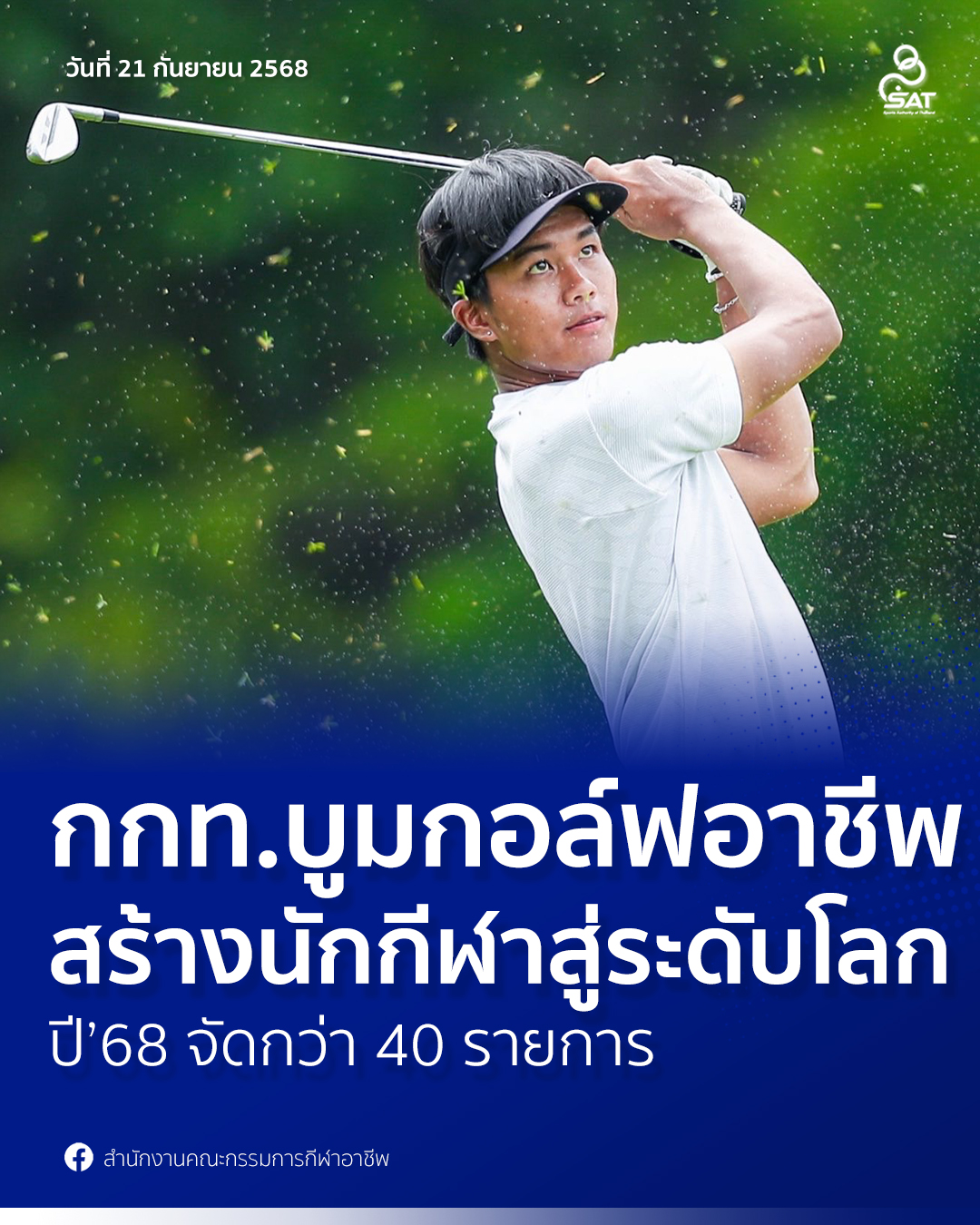 การกีฬาแห่งประเทศไทย (กกท.) โดย สำนักงานคณะกรรมการกีฬาอาชีพ เดินหน้าส่งเสริมและขับเคลื่อนวงการกอล์ฟไทยในทิศทางของการแข่งขันกีฬาอาชีพอย่างเต็มรูปแบบ ผ่านการจัดแมตช์อาชีพตลอดปี 2568 มากกว่า 40 ทัวร์นาเมนต์ในทุกระดับ ทั้งประเภทชาย-หญิง, เยาวชน ตลอดไปจนถึงรายการระดับอาวุโส