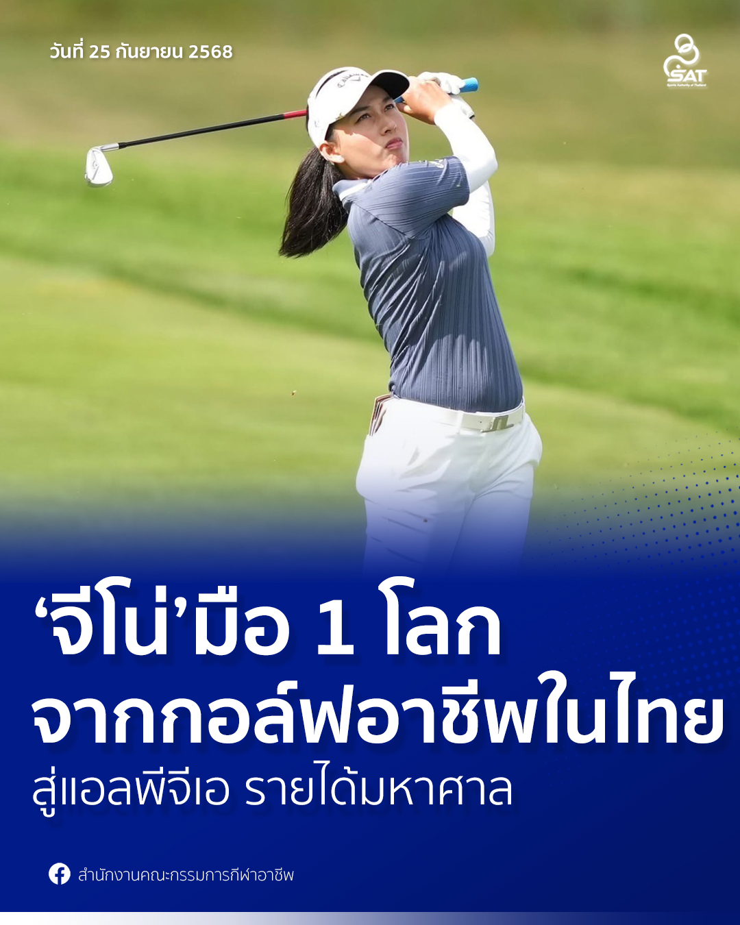 25 September 2025‘จีโน่’ มือ 1 โลก จากกอล์ฟอาชีพในไทยสู่แอลพีจีเอ รายได้มหาศาล
