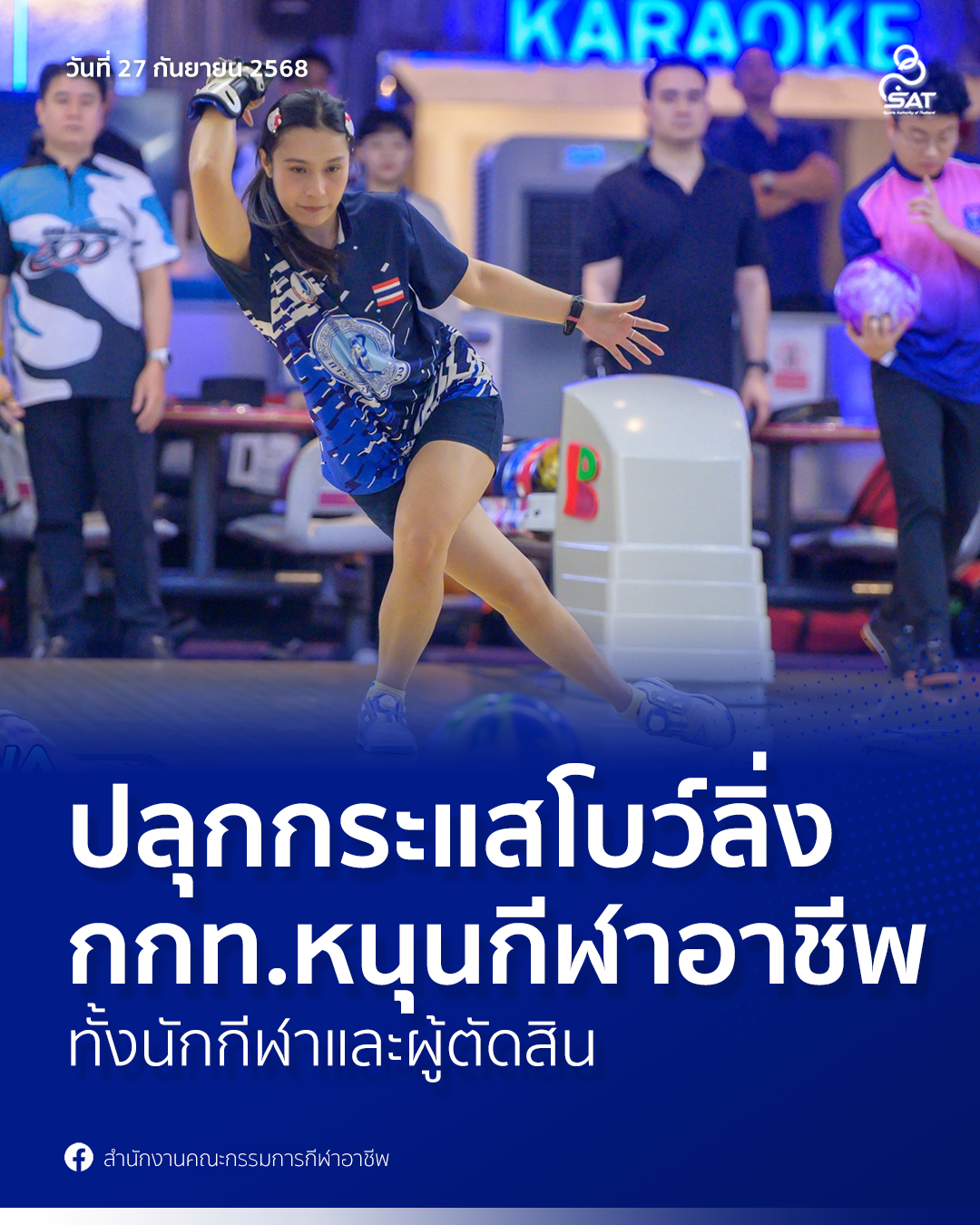 27 September 2025ปลุกกระแสโบว์ลิ่ง กกท.หนุนกีฬาอาชีพ ทั้งนักกีฬาและผู้ตัดสิน