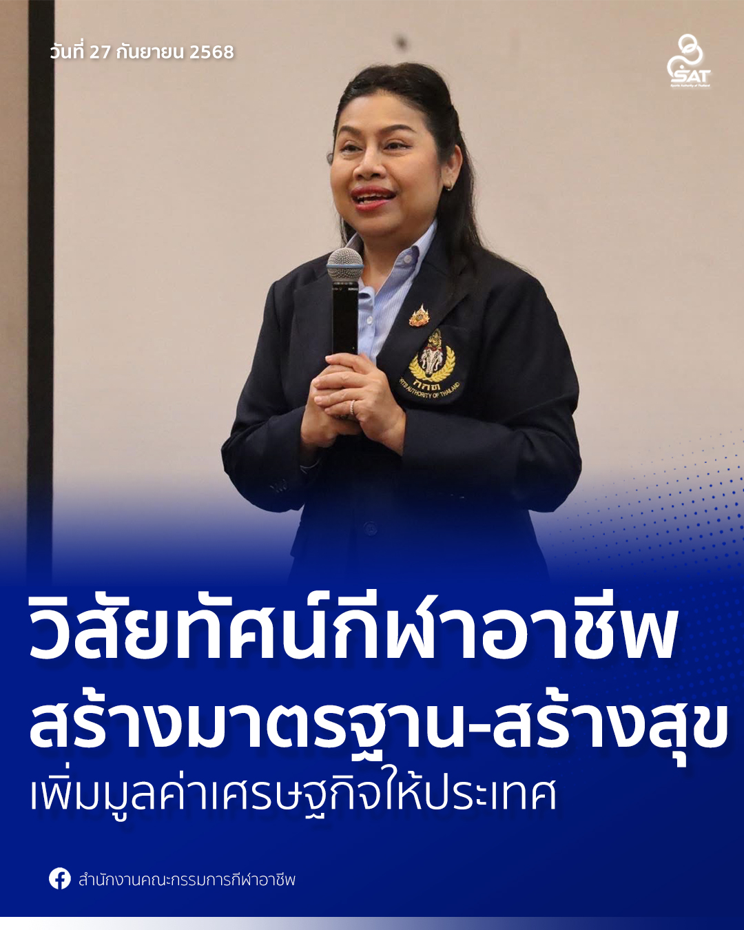 27 September 2025วิสัยทัศน์กีฬาอาชีพสร้างมาตรฐาน-สร้างสุข เพิ่มมูลค่าเศรษฐกิจให้ประเทศ